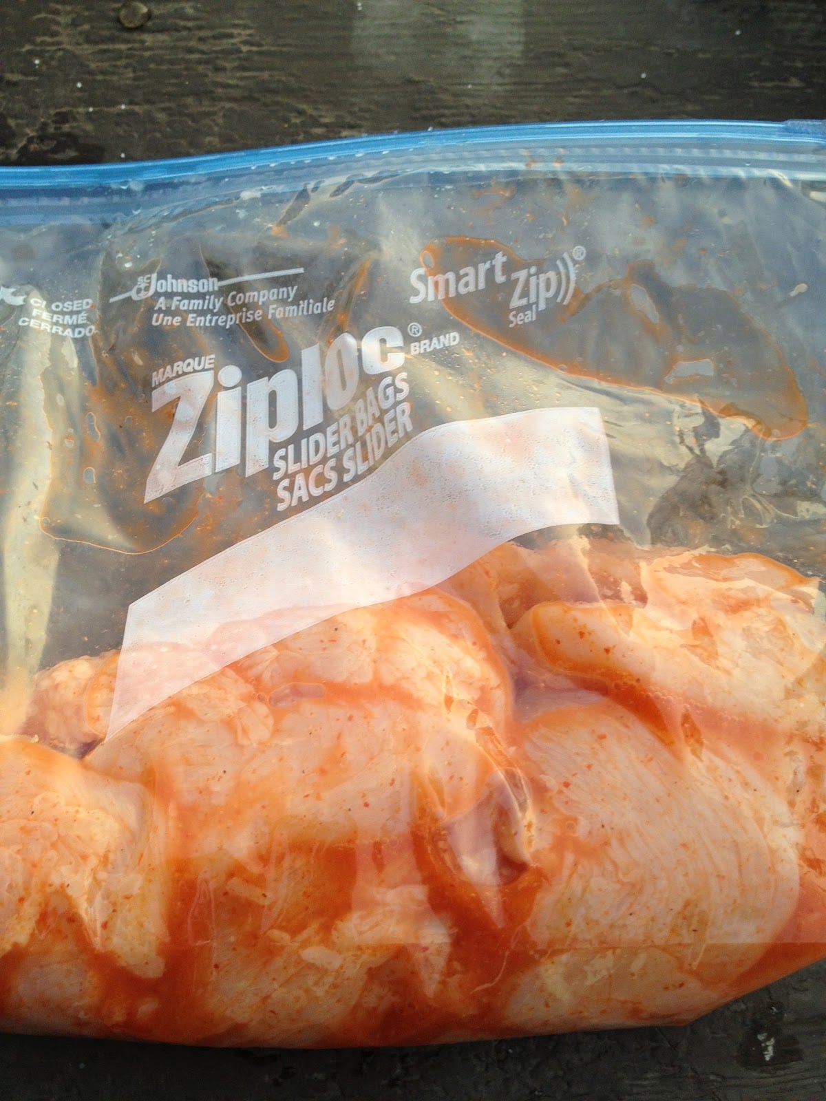 • Place the chicken in a ziploc bag and add the lime juice, Cholula, garlic powder, and salt. Shake it up to make sure the chicken is coated with marinade and toss the bag in the cooler for at least a half hour.