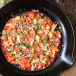 • Carefully place the skillet under the broiler and cook for 4-5 minutes until the cheese is melted and bubbling and the tortilla is nicely browned at the edges. (Please keep an eye on it, peeps, all broilers are different!)