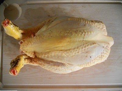 -Cut the wings off just below the joint. (If necessary please also remove the feet and neck…)