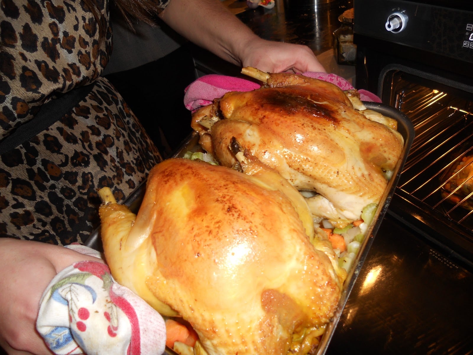 Now, cutting feet off of a chicken is never super fun, but it’s not the end of the world. Necks on the other hand…UNFORGIVABLE. I don’t know if I can adequately describe exactly how a chicken neck looks after it has been beheaded and de-feathered. Luckily, Sivan did it for me: “Can’t you cook it with the neck on? It looks like a flaccid penis, Serena. I really don’t think you want to touch it.” Yeah, well you can’t always get what you want. Unfortunately, cooking the chicken with the neck on would dry out the meat and make it very ugly to carve later on (I know these things because I go to Cordon Bleu, thank you very much). Because I didn’t happen to be traveling with my meat cleaver that particular afternoon, Liberty and I took turns hacking away at the feet and necks of the four chickens. 45 minutes later, we were tired, sweaty, and sore, but we made those birds our bitches. Weirdly enough, I think this was a bonding experience for us.