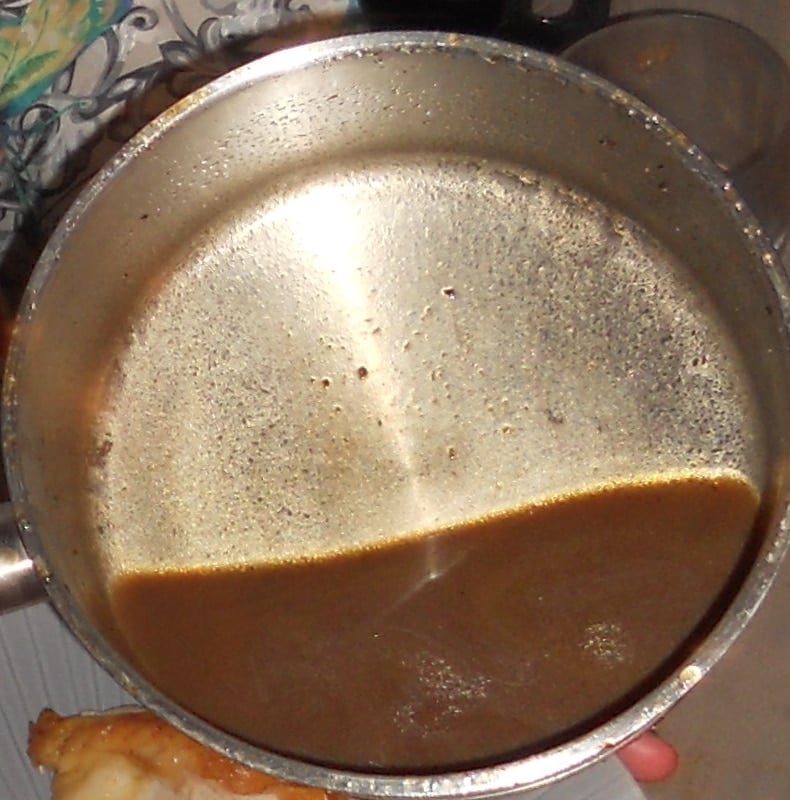 -Strain the fat from the chicken wings and vegetables that were roasted with your chicken.