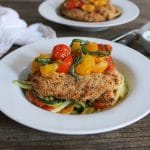 Dude Diet Chicken Cutlets and Zucchini “Noodles” with Cherry Tomatoes: (Serves 2)