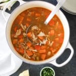 • Ladle the soup into bowls and garnish with cilantro and avocado or toppings of your choice!