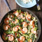I served my stir-fry over cauliflower rice because a.) I like the taste, and b.) naked season is near, but the original recipe calls for basmati or jasmine rice, so feel free to go the original route if you prefer. If you’re anti-seafood or simply don’t feel like shelling out for shrimp, try making this stir-fry with boneless, skinless chicken breasts or thighs. (Simply stir-fry the chicken for about 5-6 minutes until cooked through, remove it from the pan, cook the veggies, and then add the chicken back to the pan at the end.) And for those looking to up the fancy, I recommend garnishing your stir fry with toasted sesame seeds or sliced scallions (or both!).