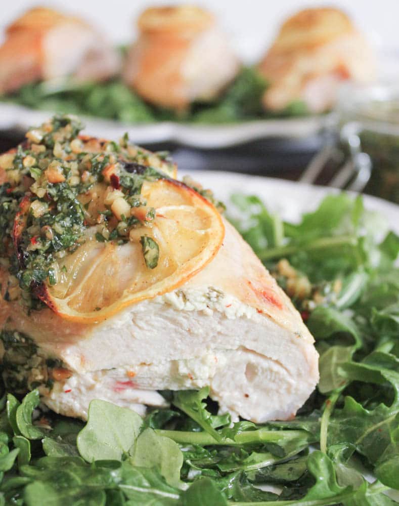 Goat Cheese Stuffed Chicken Breasts with Rustic Basil Pesto