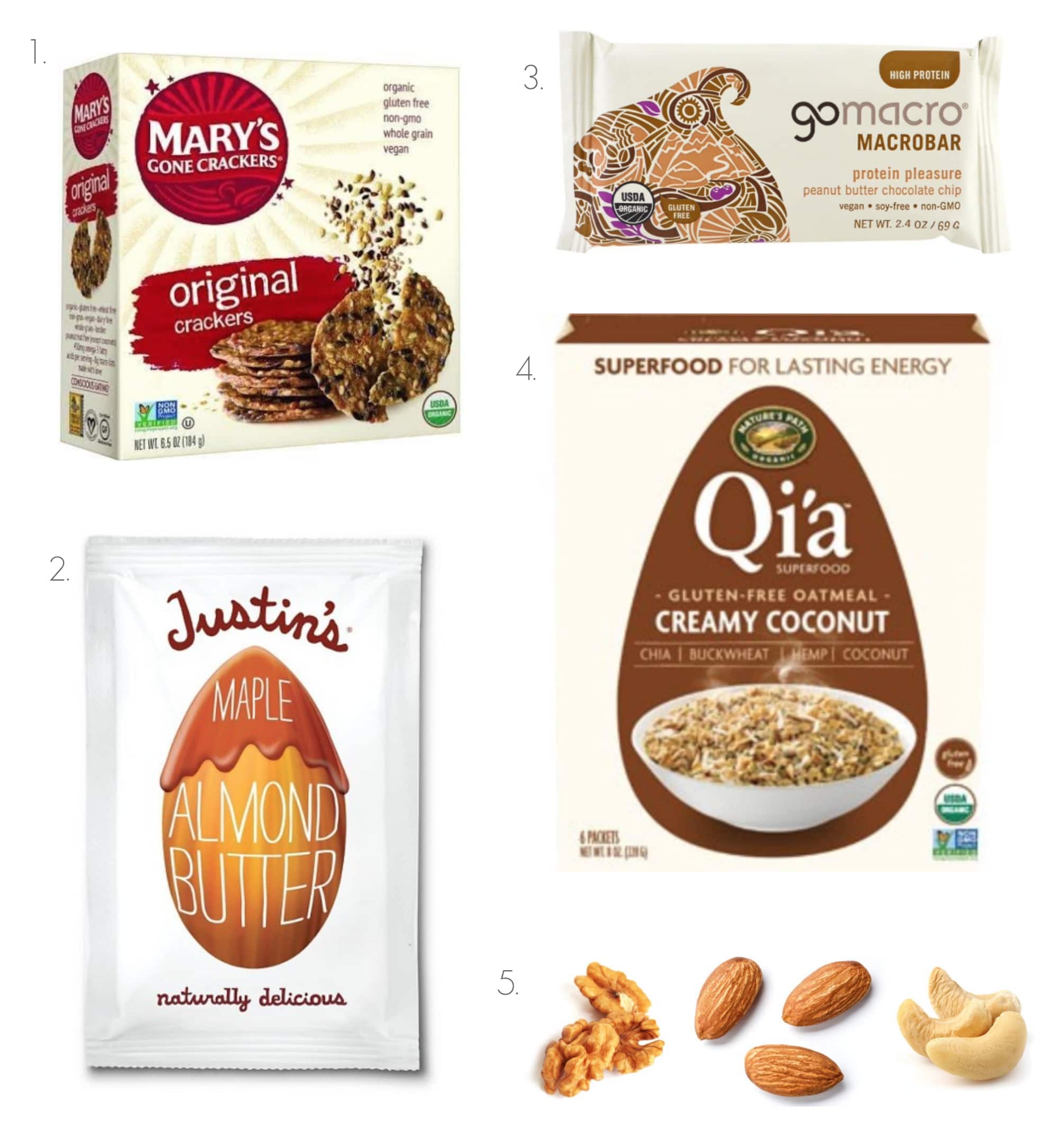 4. Oatmeal packets. Instant oatmeal packets, like Nature’s Path Qi’a, are a very practical addition to the snack pack, especially when one is staying in a hotel. (A lot of hotels have Keurig machines in their rooms or hot water in the lobby in the morning.) Just stir hot water and oatmeal in a mug, paper cup, or even a glass, wait a few minutes, and BOOM. Healthy breakfast in a flash. If you have some extra nuts or dried fruit in your snack pack, use them as fancy toppings!