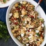 This hearty, highly textured salad is a smorgasbord of fresh, bright flavors, and I can’t get enough. I’ve always loved farro’s nutty chew, and it’s the ideal base for tender, caramelized cauliflower and sweet-tart sun-dried tomatoes. Toasted almonds add crunch, fresh parsley punches up the fresh factor, feta delivers some savory flair, and tangy red wine vinaigrette ties everything together. The end result is quite the nourishing taste treat, I promise.