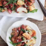 And that, friends, is exactly what I did when it came to creating the potato salad you see on your screen. Behold the glory of Roasted Potato Salad with Pancetta, Sun-Dried Tomatoes and Arugula….