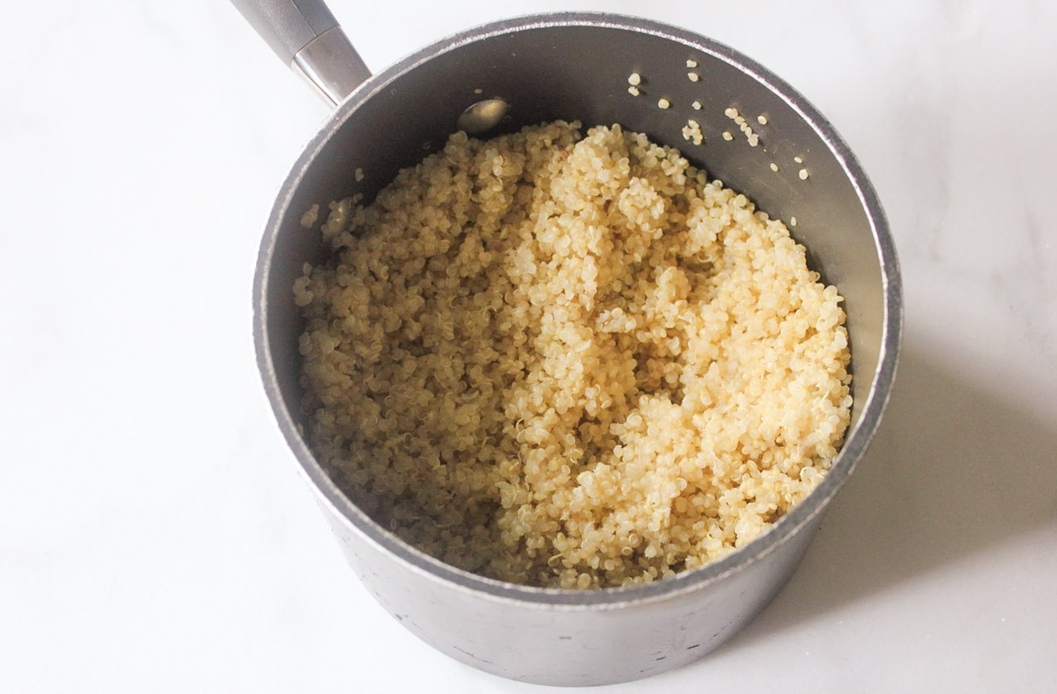 - Combine the quinoa and vegetable broth in a small saucepan and to a boil. Lower to a simmer, cover the saucepan with a lid, and cook for 14 minutes, or until all of the liquid has been absorbed. Let the quinoa rest, covered, for 5 minutes, then fluff with a fork.