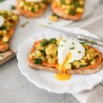 • Assembly the toasts: Spread each piece of toast with a thick layer of sun-dried tomato white bean spread. Top with cooked squash and an egg. Garnish with chives and extra salt and fresh ground pepper if you like, and serve immediately.