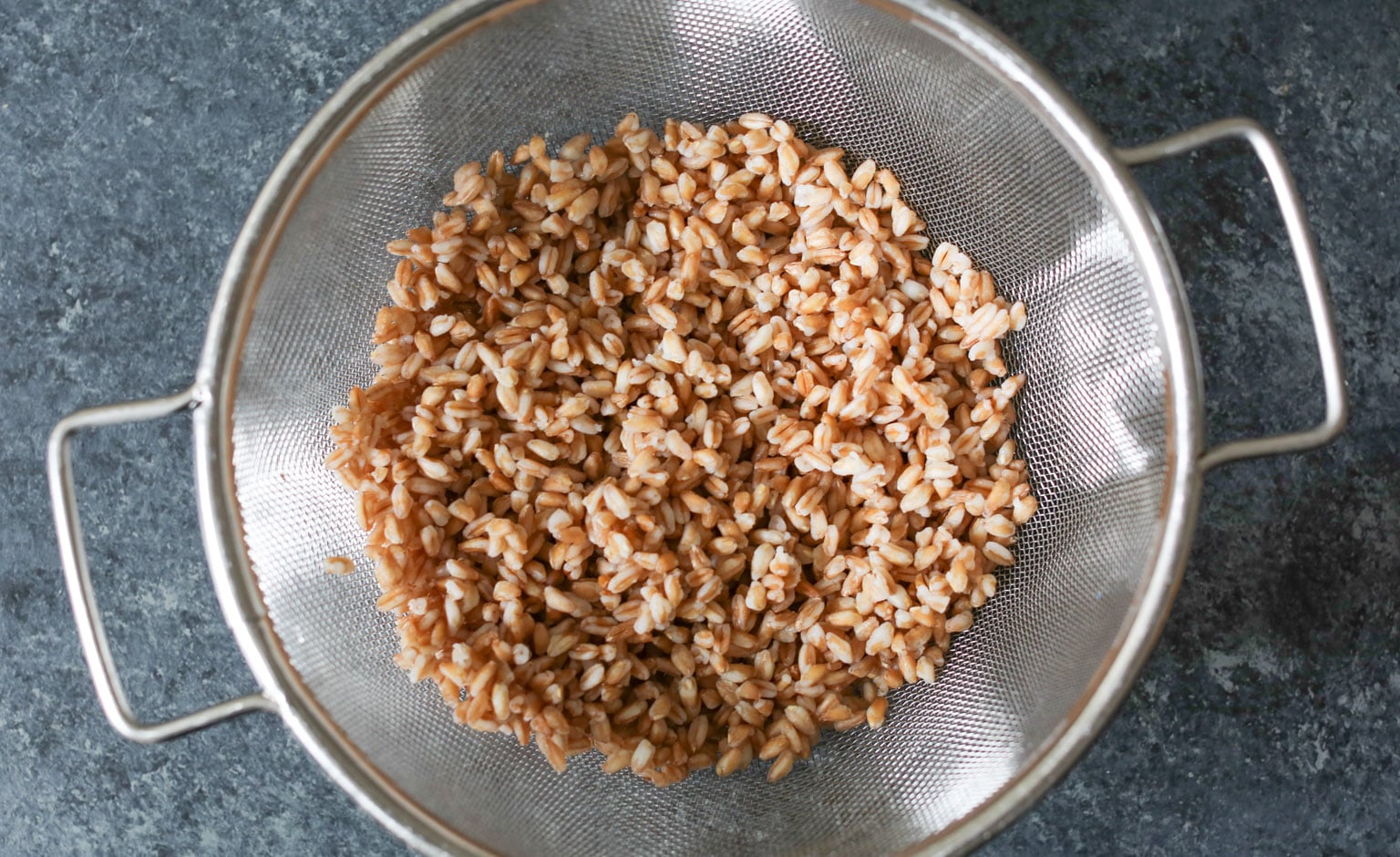 -Cook the farro according to the package directions. Strain and briefly set aside.