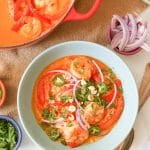 • Add the shrimp to the curry and simmer for 5 minutes until bright pink and opaque. Remove from the heat and stir in the lime juice.