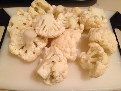 -Remove florets from the head of cauliflower. (Florets= not the stalk! Duh?).
