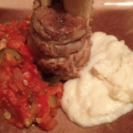 Pork Shank Osso Bucco with Cauliflower Puree and Spicy Ratatouille