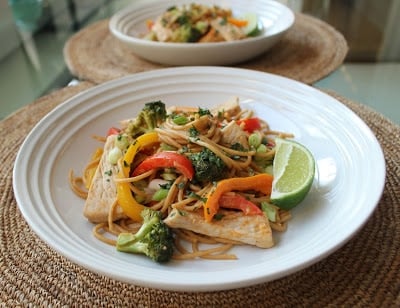 Peanut Noodles with Pork and Vegetables is bomb. Multi-grain spaghetti provides the necessary post-workout carbs, and tender pork loin strips pack more than 20 grams of protein per serving. (If you’re not into pork, you can easily substitute chicken or lean beef.) The creamy peanut sauce is nutty and slightly sweet with a kick of heat from Sriracha and fresh ginger. Thanks to reduced-fat peanut butter and no added oil, this sauce is actually very low in fat, and it can be made entirely from ingredients that you’re likely to already have in your kitchen, dudes. This recipe is also packed with broccoli and bell peppers, which means you’ll get more than a full serving of vegetables with a healthy dose of fiber, vitamin C, and anti-oxidants. Winning.