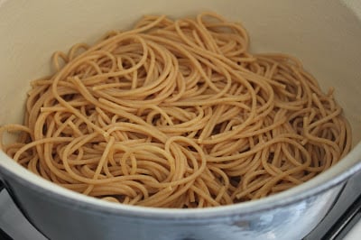 • 6 ounces whole wheat spaghetti