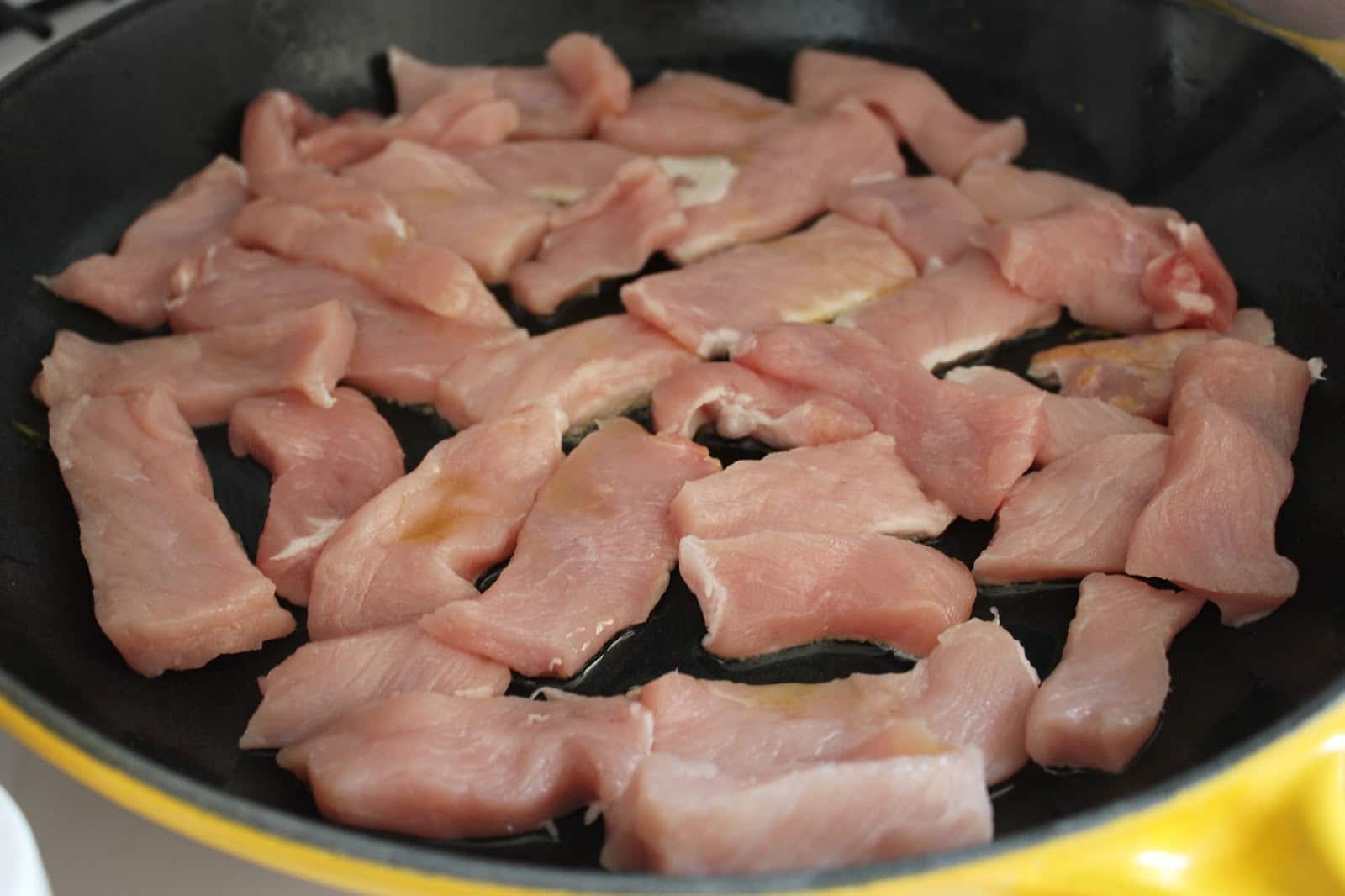 • 1 pound boneless loin pork chops sliced into ¼ inch strips
