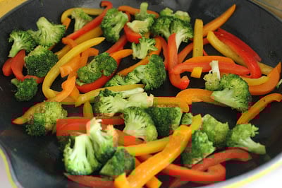 2 cups sliced bell peppers (I used a combination of red, yellow and orange.)
