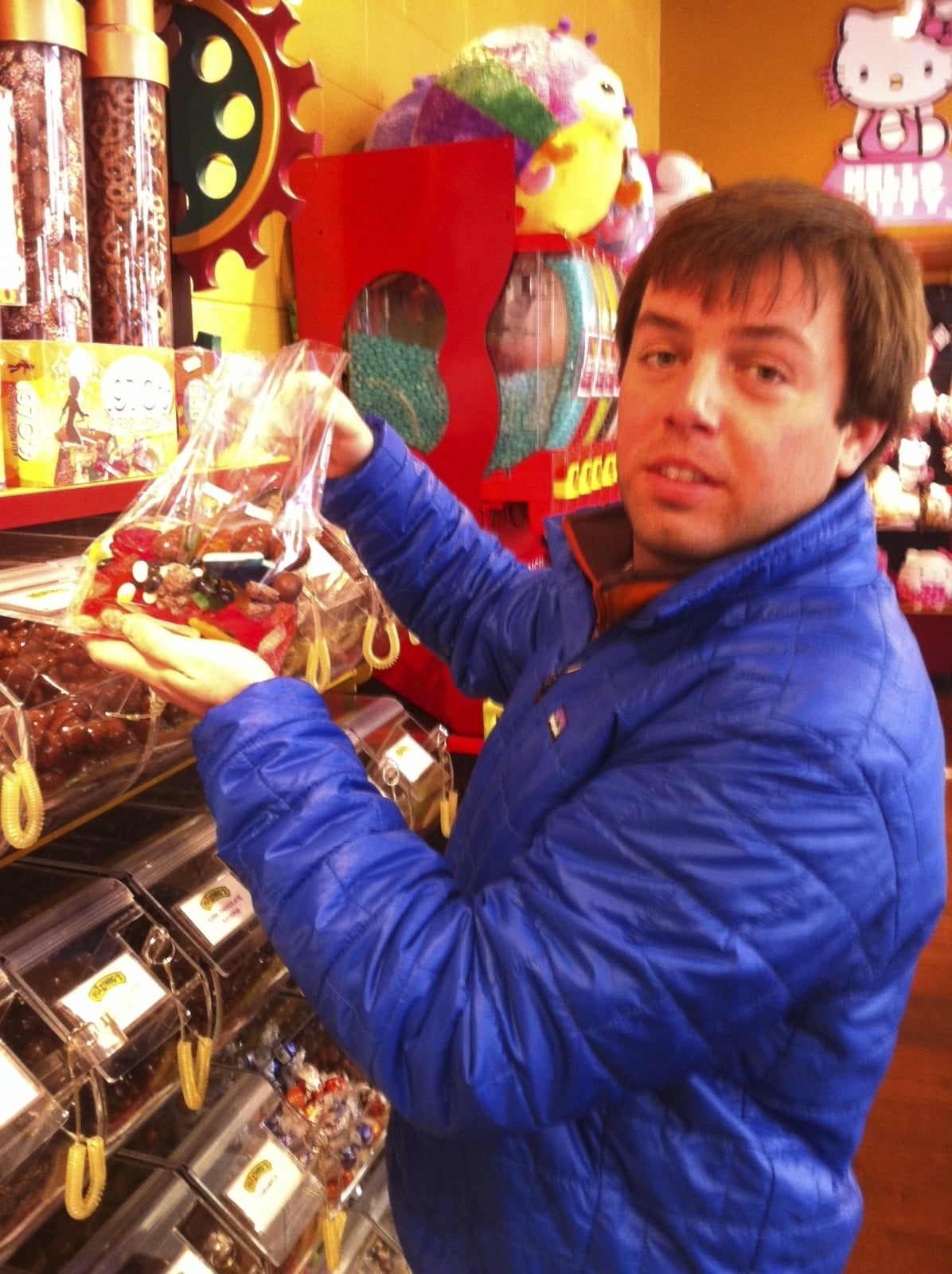 While restaurant desserts and baked goods pose a threat to The Dude Diet, it seems that the bulk of most dudes’ sugar intake comes from candy. When it comes to candy, Logan has zero portion control.  This became glaringly obvious during a trip to Mr. Fuzziwig’s Candy Factory a few months ago. Logan was the biggest, happiest kid in that candy store, and he ended up with the heaviest bag of bin candy I have ever seen in my life. The nice proprietor even asked Logan if he was having a party. If by “party” he meant eating all of that candy while crushing beers in a nearby bar, then yes sir, Logan was definitely having a party.