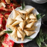Place the finished turnovers on a baking sheet lined with parchment or a silicone baking mat. (You will likely need two baking sheets.) Brush the tops with a tiny bit more olive oil and season with a little flaky salt (or kosher salt) and black pepper.