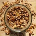 Transfer the granola to a wire rack to cool. (If you don’t have a wire rack, don’t panic. Just slide the parchment onto your countertop and let the granola cool.) When cool, break up the granola and sprinkle with the golden raisins.